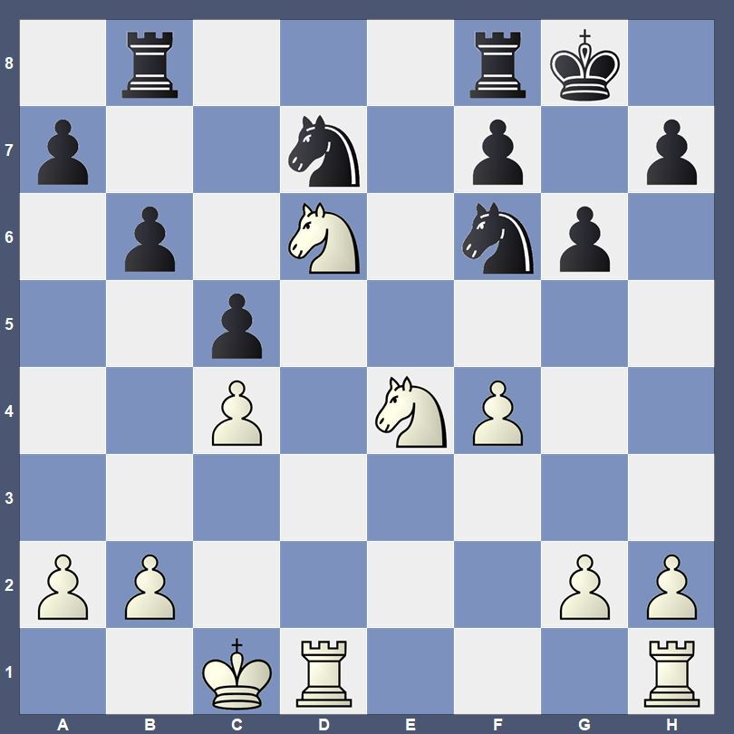 Доминация белых настолько мощная, что компьютер готов отдать пешку 22...a6 23.a4 b5 24.a:b5 a:b5 25.N:b5 Nb6 ради небольшого всплеска активности. В противном случае дела черных совсем плохи.