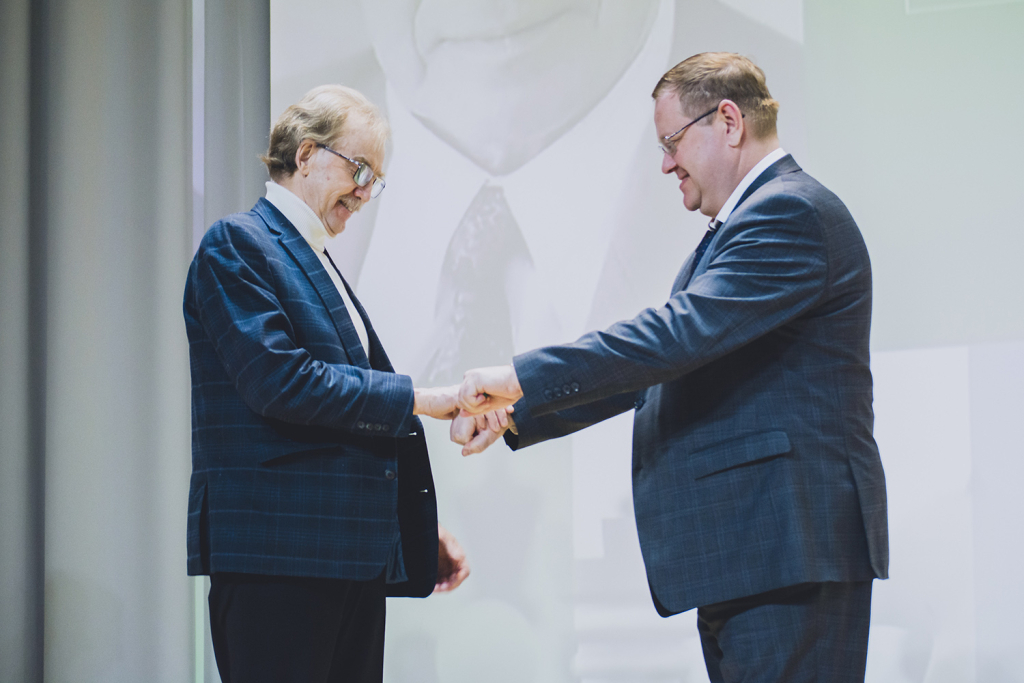 Михаил Владимиров и Максим Ивахин награждают трио победителей